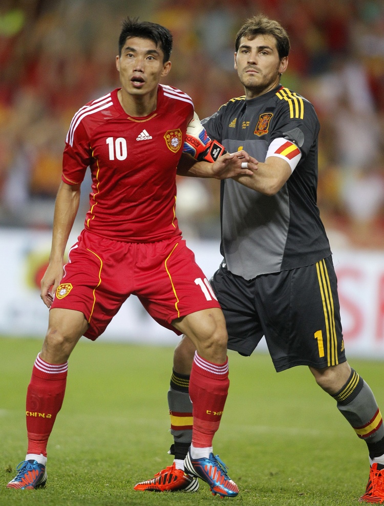 2012年6月4日欧洲杯前夕,国足在西班牙塞维利亚以0-1负于当时世界排名第一的西班牙队。上半场比赛,郑智错失单刀,下半场第84分钟,伊涅斯塔助攻席尔瓦完成绝杀。当时国足的主帅还是卡马乔。